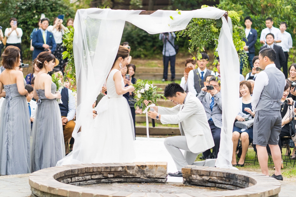 初めにFOR U に来ていただいた時は「テントを立ててガーデンウエディングがしたい!」と希望されていたお二人。色々な会場に見学に行ってみたものの、なかなか条件に合う場所もなく・・・・そんな中、新婦様が一枚のお写真を送ってくれました。そのお写真に写っていた場所は、いつも私達がよくプロデュースをしている「ロッジ舞洲」だったのです。まさに新婦様が求めている「テントズドーン」のガーデンウエディングが出来る!となった数日後、一緒に舞洲に行ったことを今でもよく覚えています。笑 そこからは準備もトントン拍子に進んでいきました。「自分たちの結婚式だから絶対に妥協はしたくない!」って言っていた願いも無事に叶い♡こんなに素敵なパーティーに!お二人のおかげで新しい事にも挑戦できて本当に感謝しています!F夫妻、本当におめでとうございました!