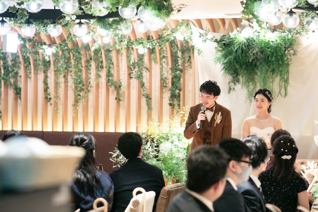 梅田にある「エントラータナビオ店」で行われた1.5次会。もともとは4月に二次会でご依頼をいただいておりましたが、緊急事態宣言が出てしまい、延期することを決断されました。この日は「まん延防止等重点措置」に伴い、酒類の提供はできませんでしたが、無事にパーティーを開催することができました。カジュアルでアットホームなパーティーを希望されていたおふたり。パーティー中もゲスト様のお席へお話をされに行ったりと、ゆったりとしたパーティーでした。お打合せからおふたりがずっと楽しみにされていた「謎解きゲーム」でも大盛り上がり!このご時世で大変なこともたくさんありましたが、無事に開催できて私たちもほホッとしました。K夫妻、おめでとうございました!